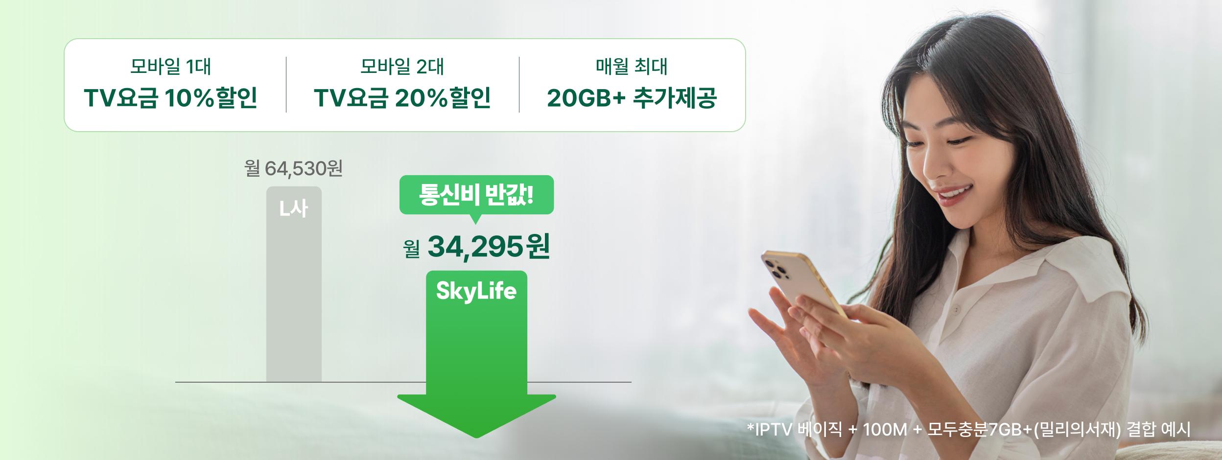 빠른 속도와 충분한 데이터로 즐기는TV+인터넷+모바일 결합 할인